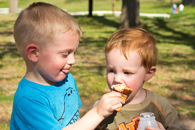 We met Grandma Elaine and Aunt Jamie to pick up Madison today in Corsicana after she spent spring break in east tx. There was a birthday party going on and the kids managed to make them feel sorry enough for them to share some ice cream. It was so funny and adorable watching Tyler and Conner share a cone. Yeah, it's a lot of the same thing over and over, but they were all slightly different and too cute to delete. It's also hilarious how Tyler couldn't give Conner a lick without sticking his tongue out. Plus a few others of my pretty Madison and Ethan, who was in a very quite mood.